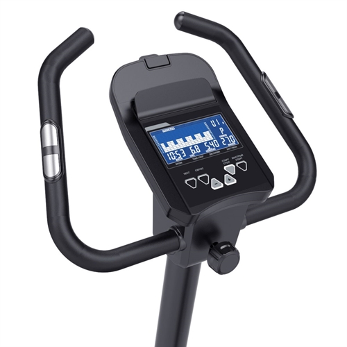 Det 8 kg tunge svinghjulet gir en jevn og realistisk sykkelfølelse, mens computeren gir deg full oversikt over tid, hastighet, distanse, kalorier, watt og puls. Sykkelen kobles til vanlig strømuttak (120–240V) og støtter en maksimal brukervekt på hele 150 kg – noe som gjør den ekstra stabil og slitesterk.