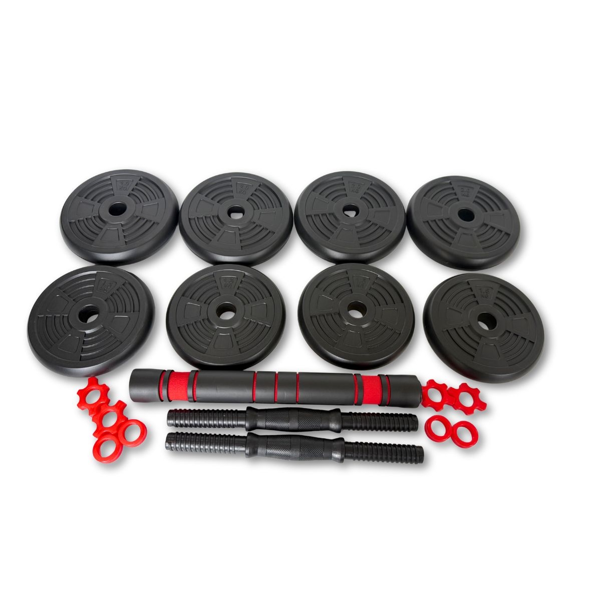 Vektskivene er enkle å justere, og settet er lett å oppbevare – perfekt for både nybegynnere og viderekomne som ønsker å komme i form hjemme uten store maskiner.