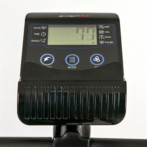 Viser: Tid, distanse, kalorier, puls, hastighet, kilometerteller, scan
