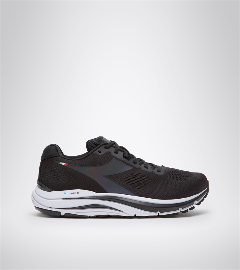 Mythos Blushield 7 vortice HIP har konstruert, tofarget air mesh nylonoverdel og iriserende detaljer, EVA elastomer innersåle og uttagbar ortolitt. Demping er sikret takket være den lette EVA-mellomsålen med Blushield-teknologi over hele foten og en såle som pleier hele foten: blåst flexoft foran og den slitesterke Duratech 5000-blandingen ved hælen.